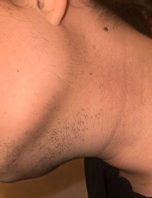 Veel klanten hebben last van rode bultjes, irritatie na het scheren. Zie hier na 2x gelaserd te hebben hoe rustiger de huid al is.
