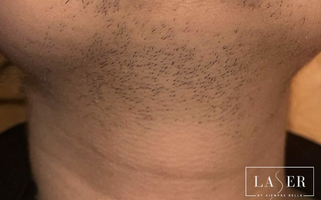 Veel klanten hebben last van rode bultjes, irritatie na het scheren. Zie hier na 2x gelaserd te hebben hoe rustiger de huid al is.